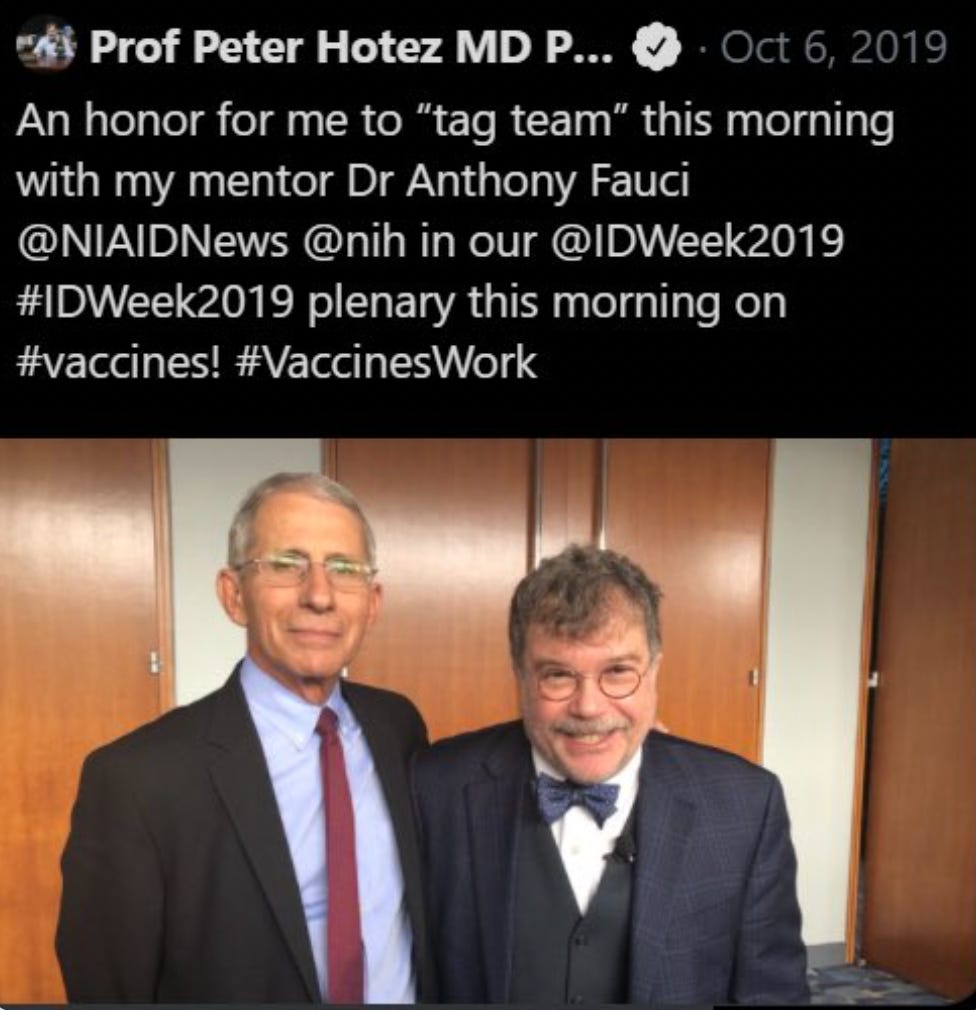 Well, separate from my work at NIH with Fauci, in late nineties I worked with the emerging small nonprofit at Georgetown Univ: Sabin Vaccine Institute. It rapidly grew and I was ousted; Peter Hotez brought in along with GAVI monies. They were pulling together the dengue vaccine initiative. He went to Texas because of the vax trials going on there. I was frequently up close and personal with Hotez. Saw him in action and over time.