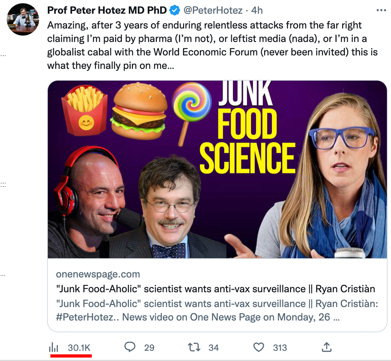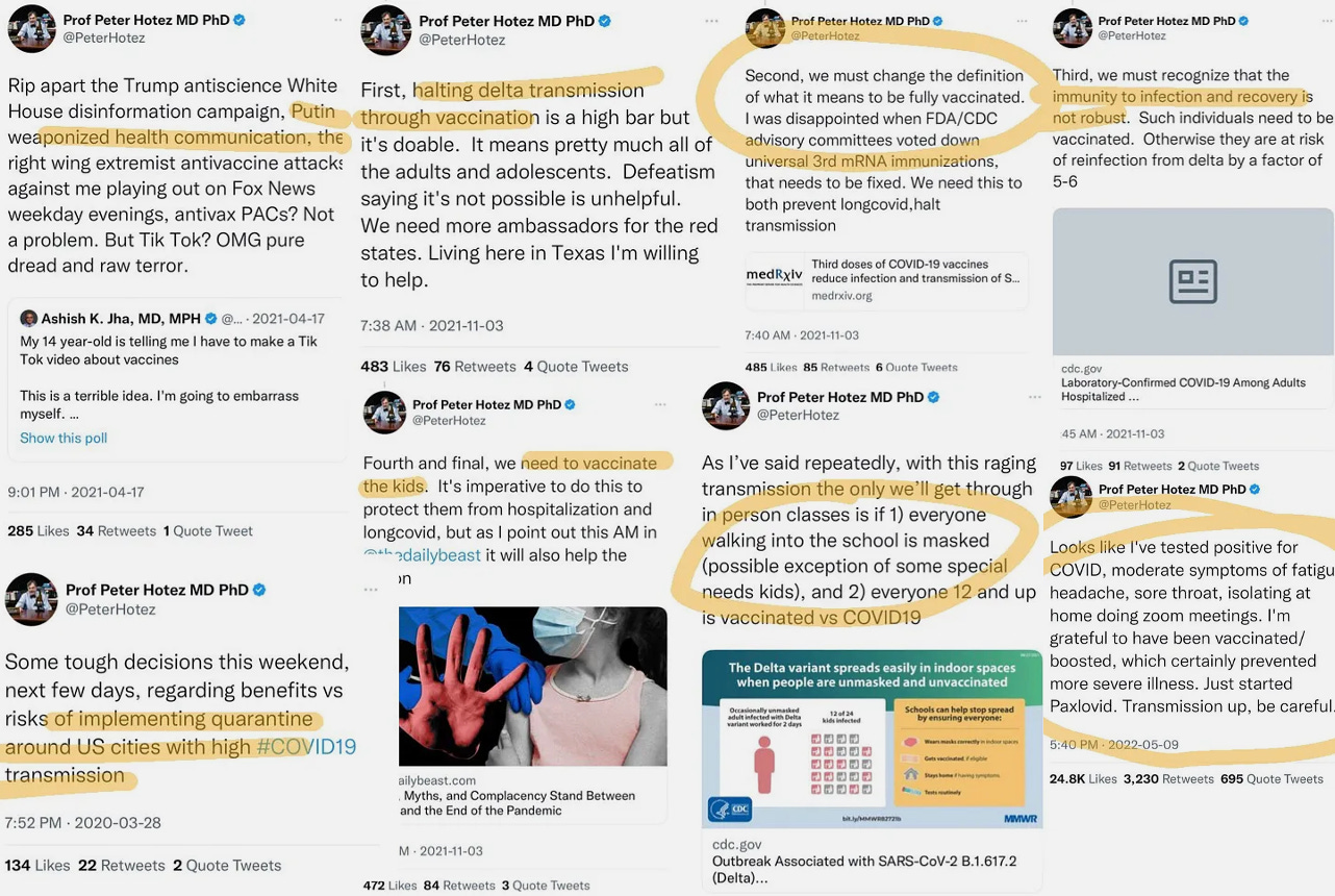 Hotez then provided a slightly more honest statement to defend himself (the podcast can be viewed here and does an excellent job at reviewing Peter’s conduct):