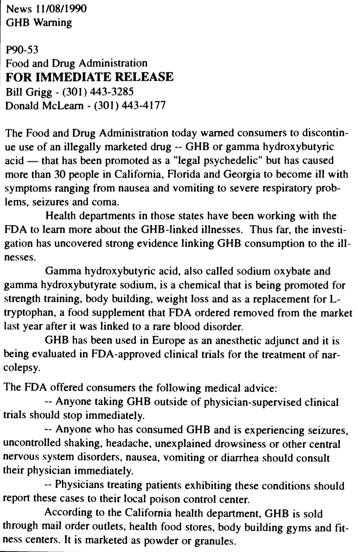 • "GHB, the new back-room drug on the party scene, can kill without warning." — Steven Frazier, CNN