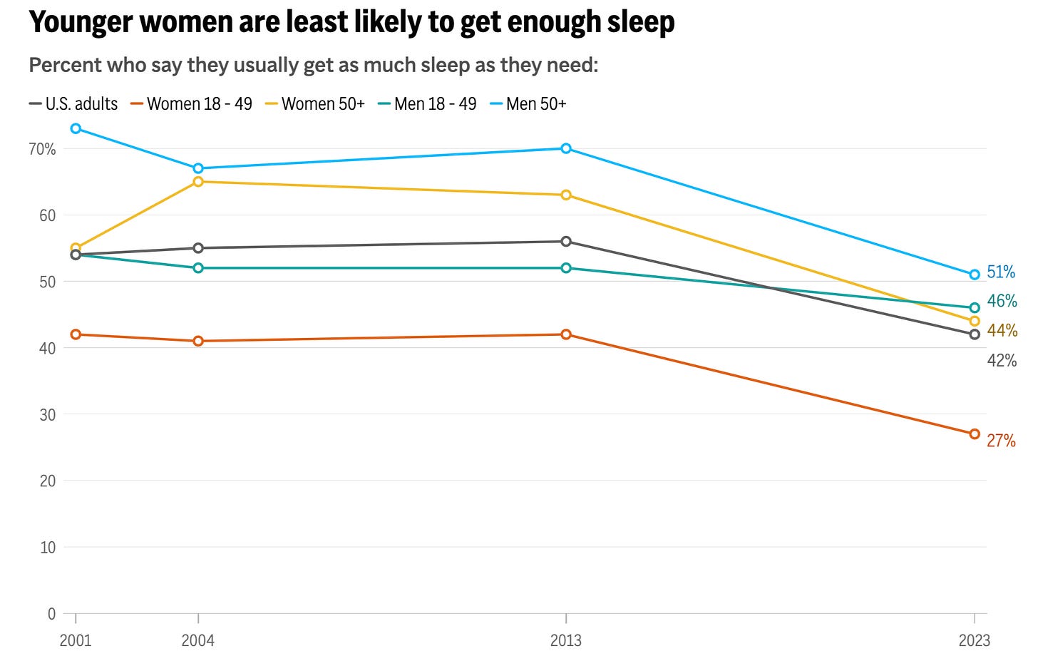 A study of 56,953 nurses found women who slept 5 hours or less were 1.7 times as likely to develop pneumonia over a 4-year period compared to those who slept 8 hours a night.
