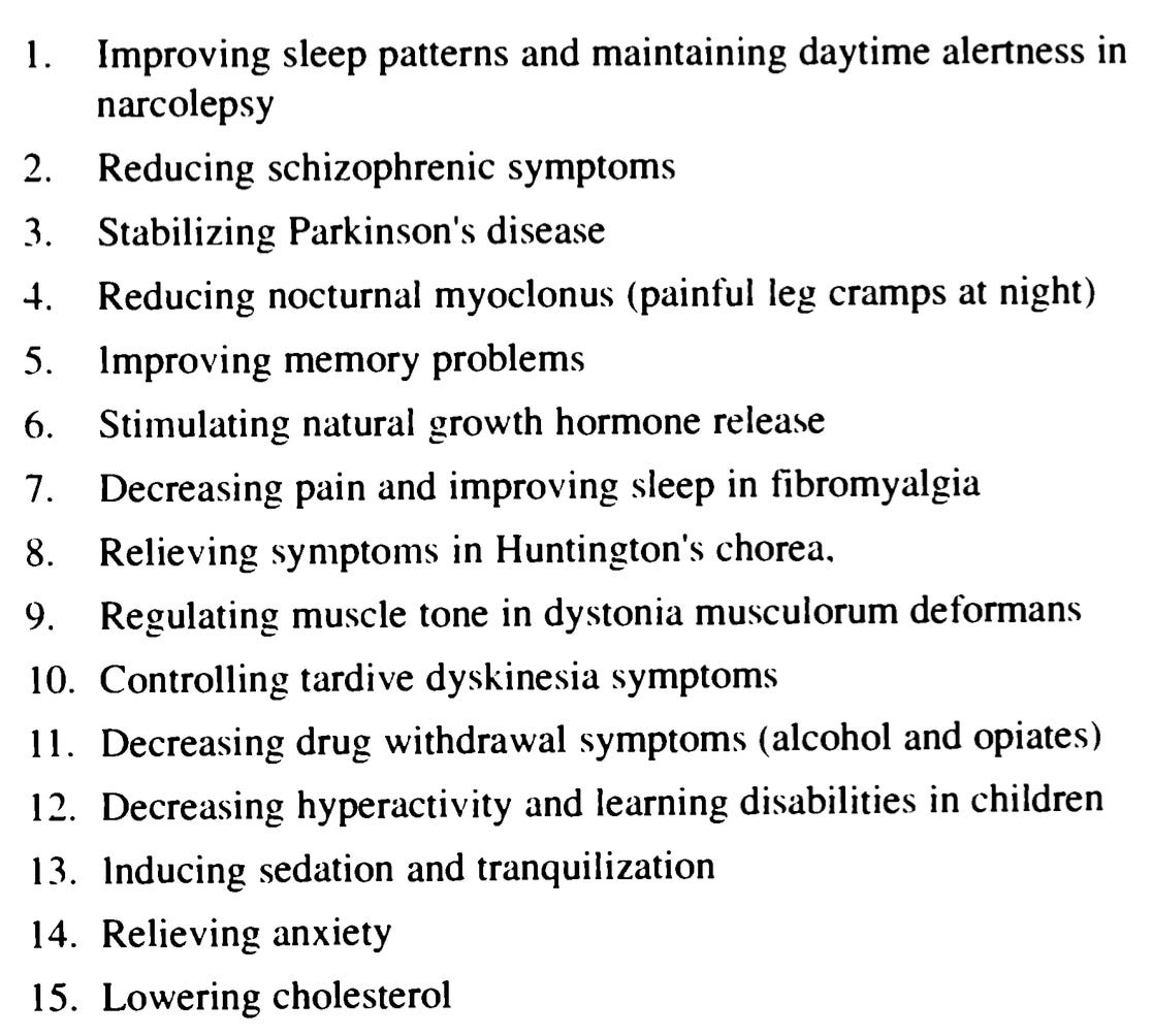 Note: the only other thing GHB has been approved for (in 2021 after years of lobbying) is the treatment of idiopathic hypersonmnia, a condition very similar to narcolepsy.