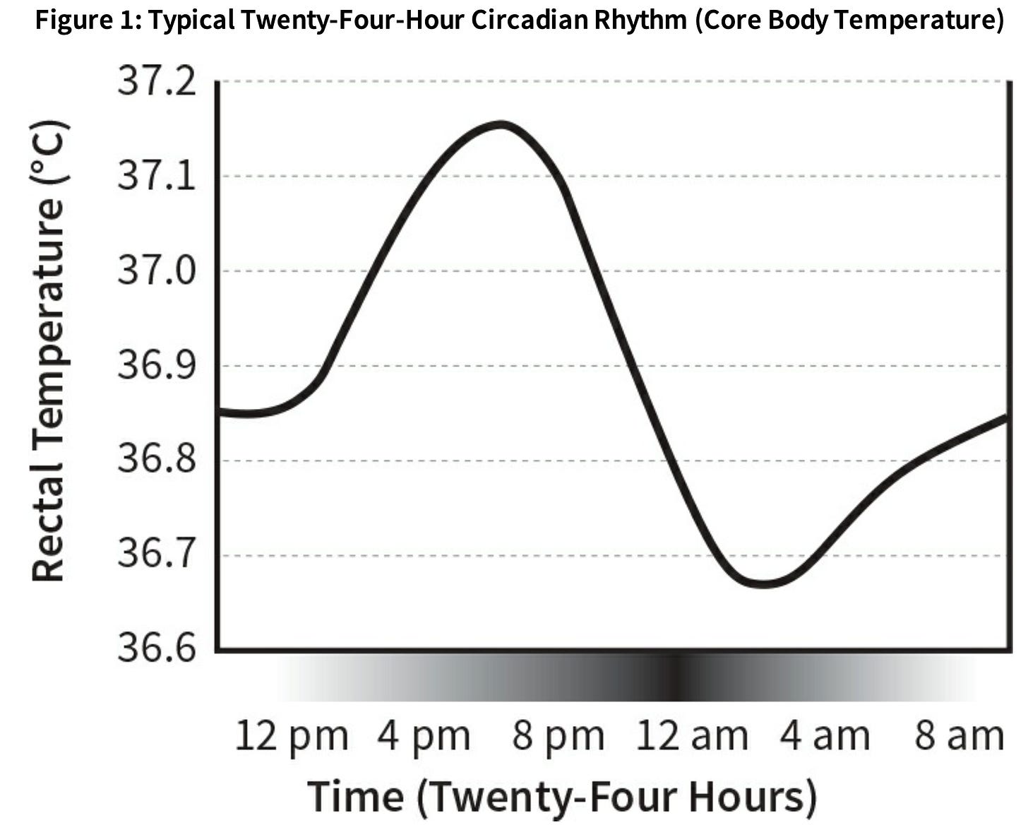2. The body has a cyclic pattern it goes through during the day known as the circadian rhythm. For example, consider what happens to its temperature: