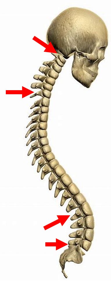 As a result, many find the most common sites of musculoskeletal pain in the spine are at the following junctions: